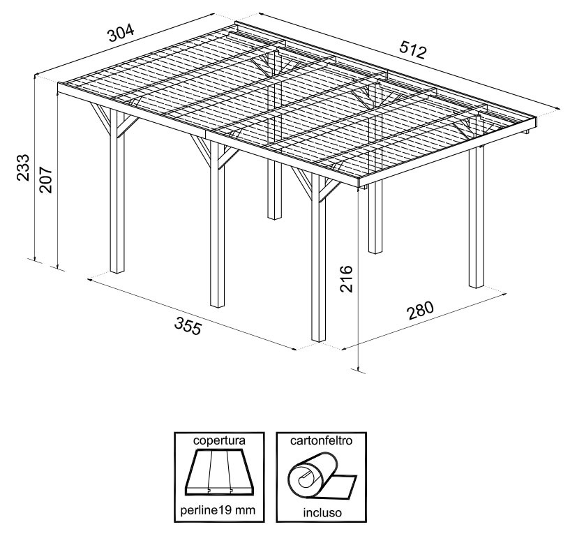 Dimensione imballo cm. 300x120x50h cm kg. 400
