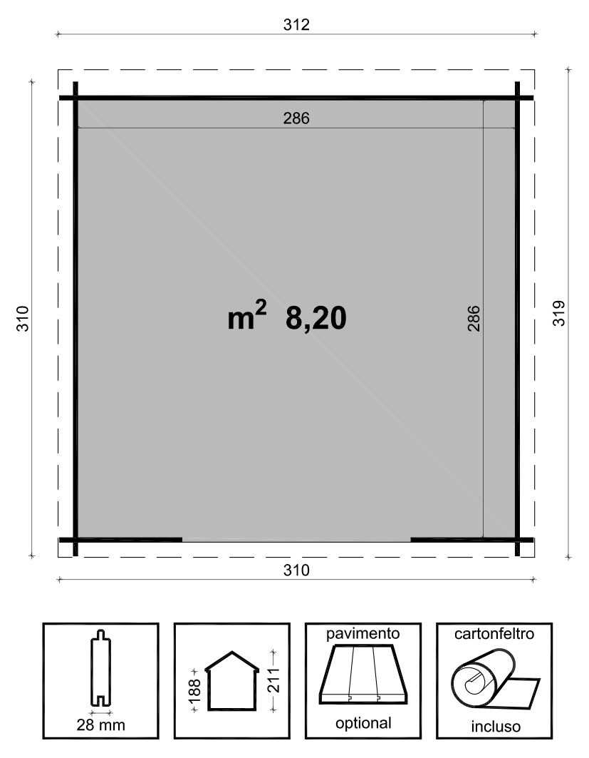 Porta doppia con maniglia e serratura cm 149,4x185h