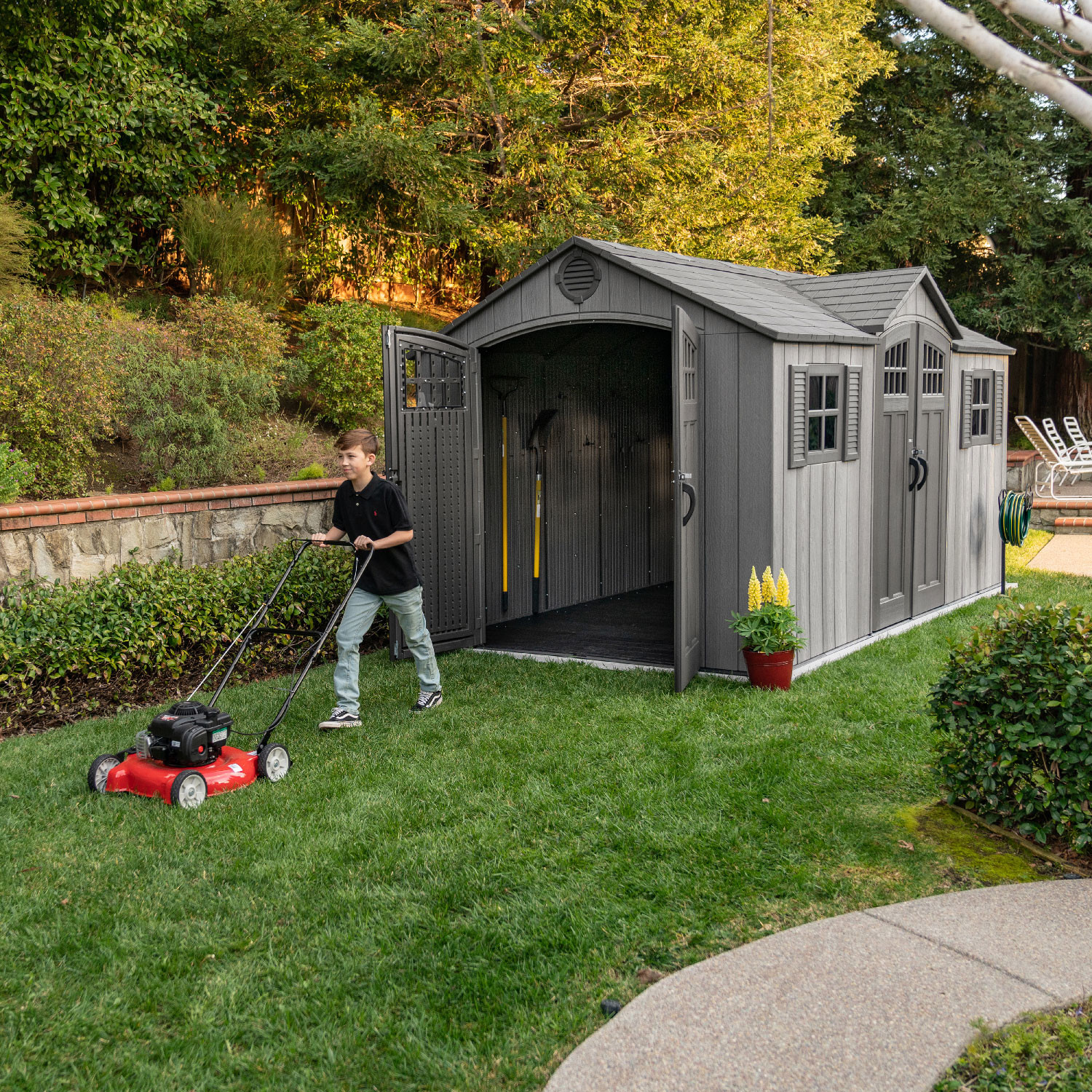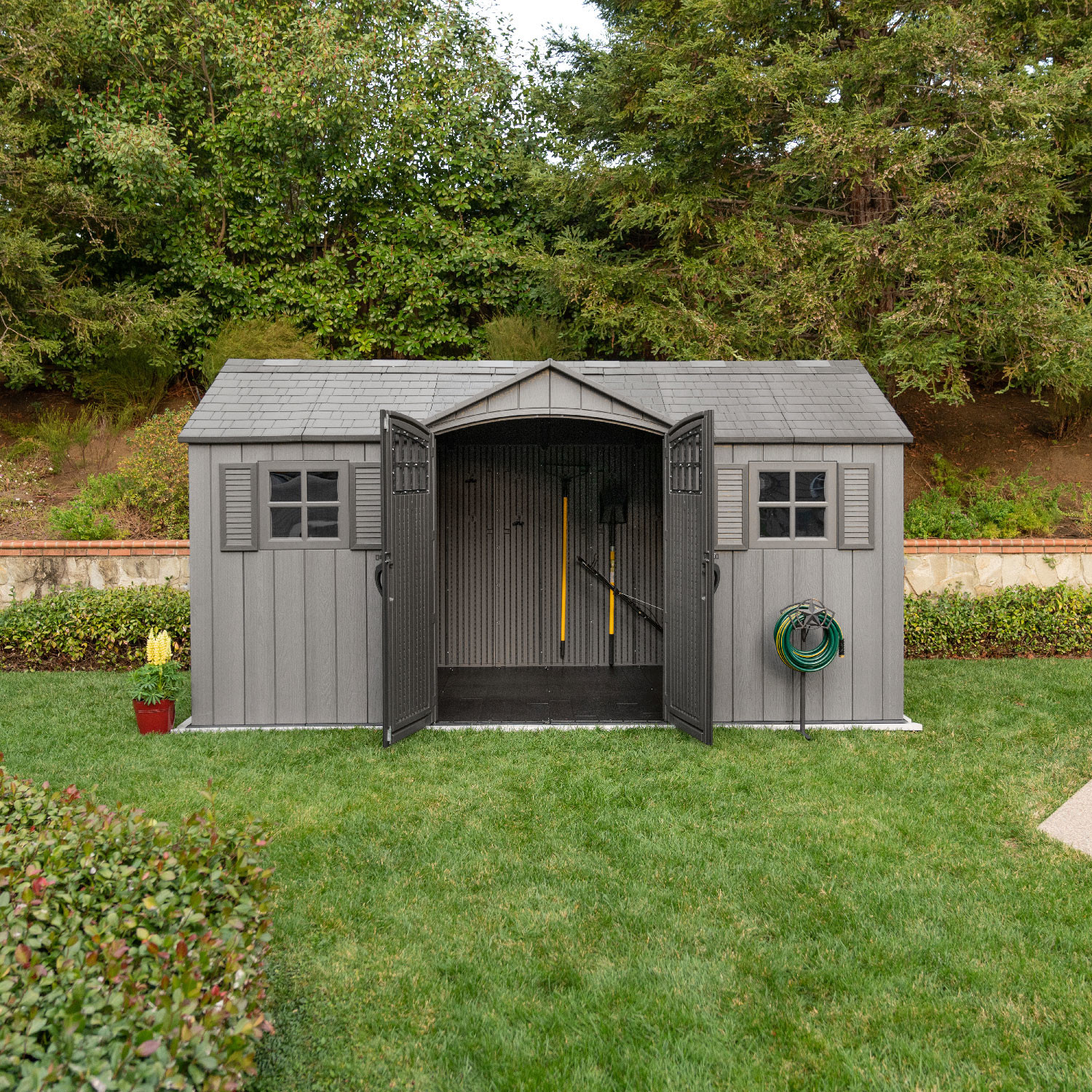 Casetta in polietilene alta densità a doppia parete (HDPE). Colore grigio con venature