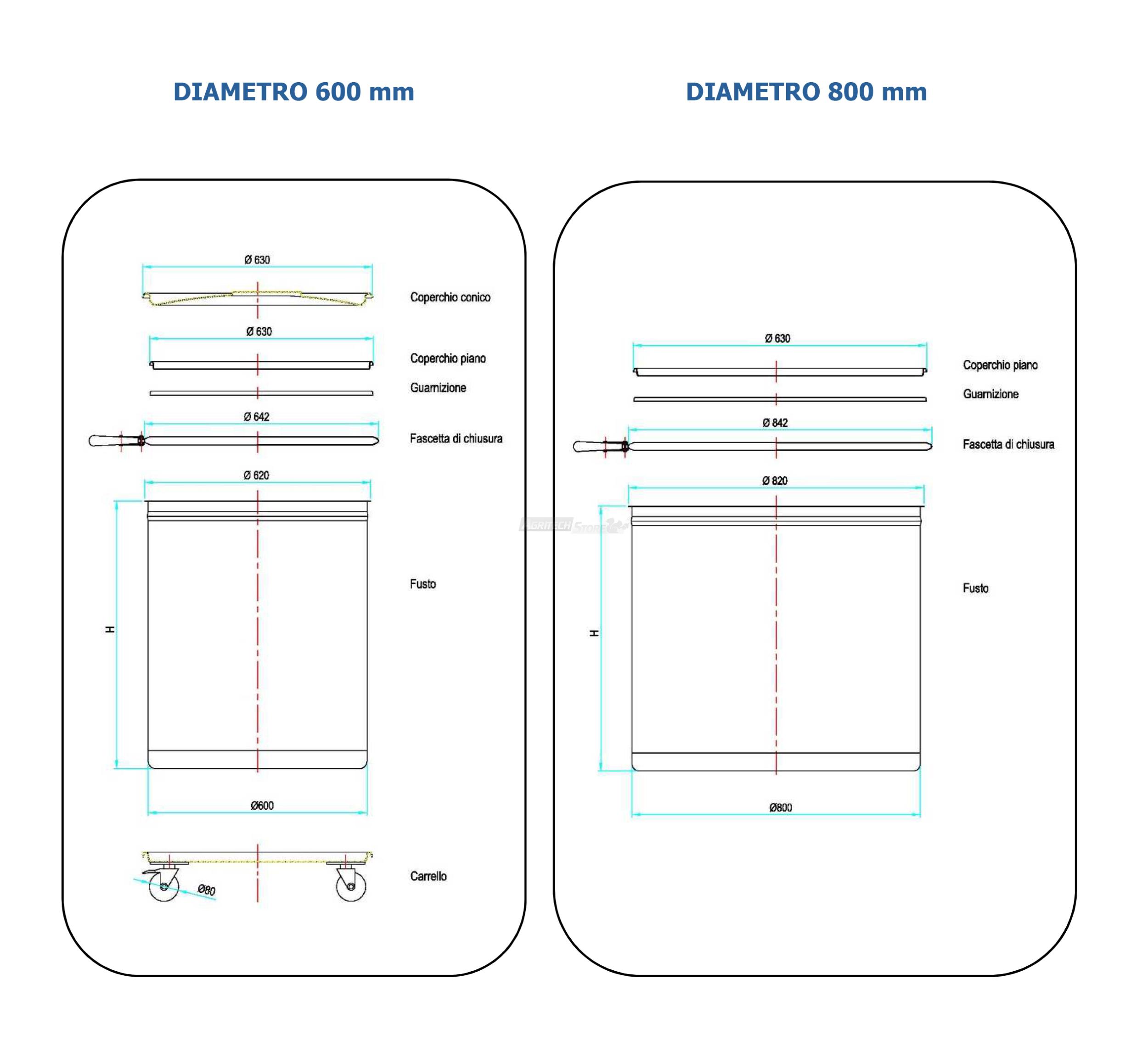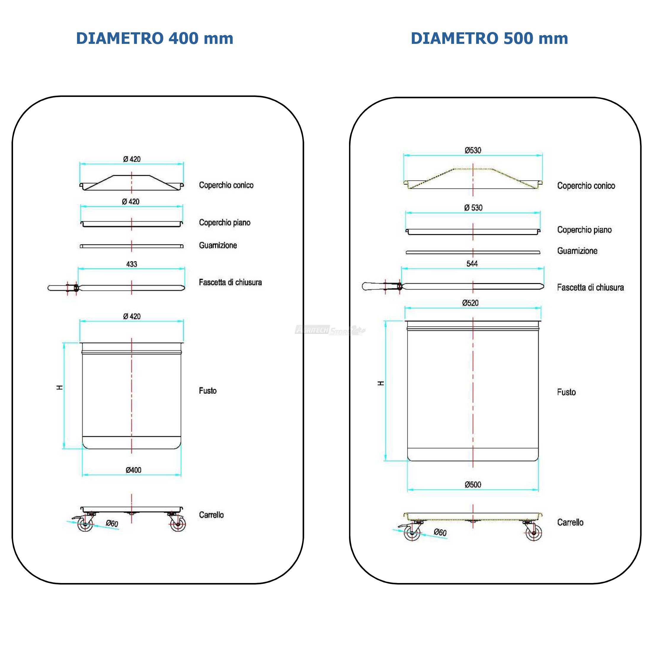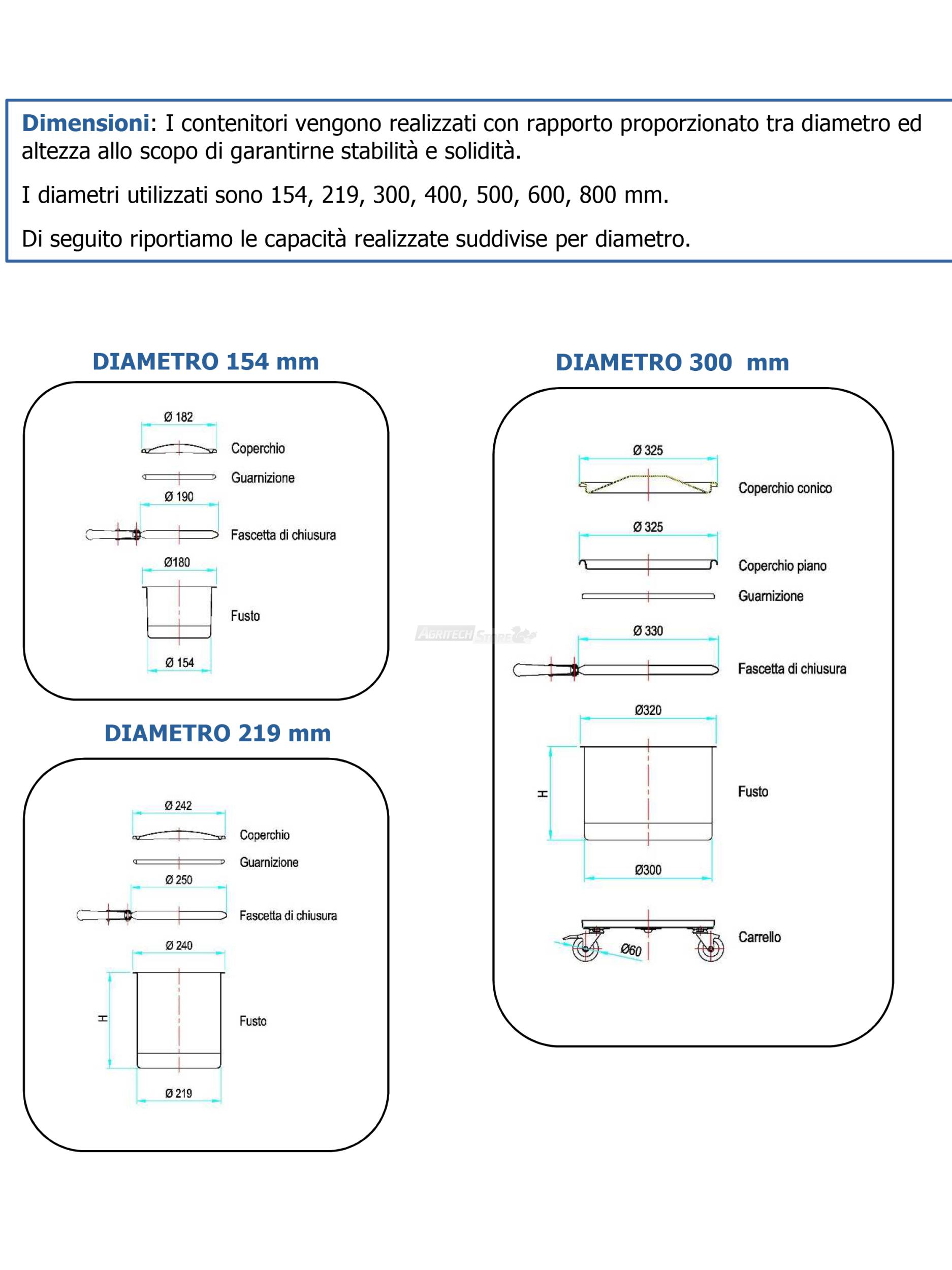 | H0125 | 100 Litri | 400 mm | 830 mm | 1,2 mm | 1,2 mm |