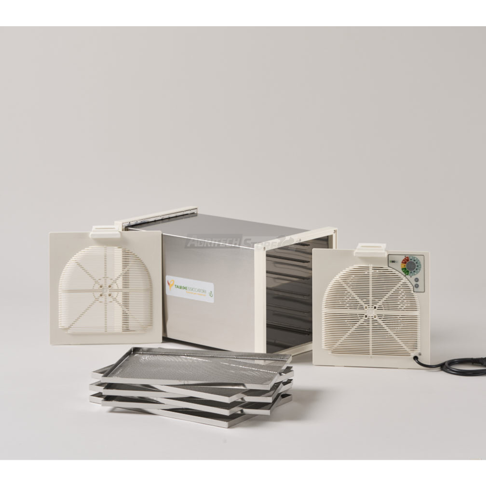 Il Biosec De Luxe B6 è un essiccatore domestico professionale in acciaio inox, perfetto per chi desidera essiccare frutta, verdura, erbe aromatiche e funghi con risultati uniformi e naturali. Dotato di 6 cestelli in acciaio inox e dell’avanzato sistema elettronico Dryset Pro, permette di selezionare programmi automatici, impostare temperatura e tempo con precisione, e utilizzare funzioni di mantenimento al termine del ciclo. La tecnologia di flusso d’aria orizzontale assicura che il calore raggiunga ogni ripiano in modo bilanciato, preservando colore, sapore e proprietà nutritive degli alimenti. La costruzione completamente in acciaio inox conferisce robustezza, igiene e facilità di pulizia, rendendo questo essiccatore domestico una scelta affidabile per l’uso quotidiano. Grazie alla qualità Made in Italy e alle prestazioni superiori, il Biosec De Luxe B6 è ideale sia per principianti sia per utenti esperti che desiderano ottenere alimenti essiccati perfetti direttamente a casa. Scegli il Biosec De Luxe B6 su AgritechStore per portare nella tua cucina un essiccatore performante, elegante e semplice da usare.