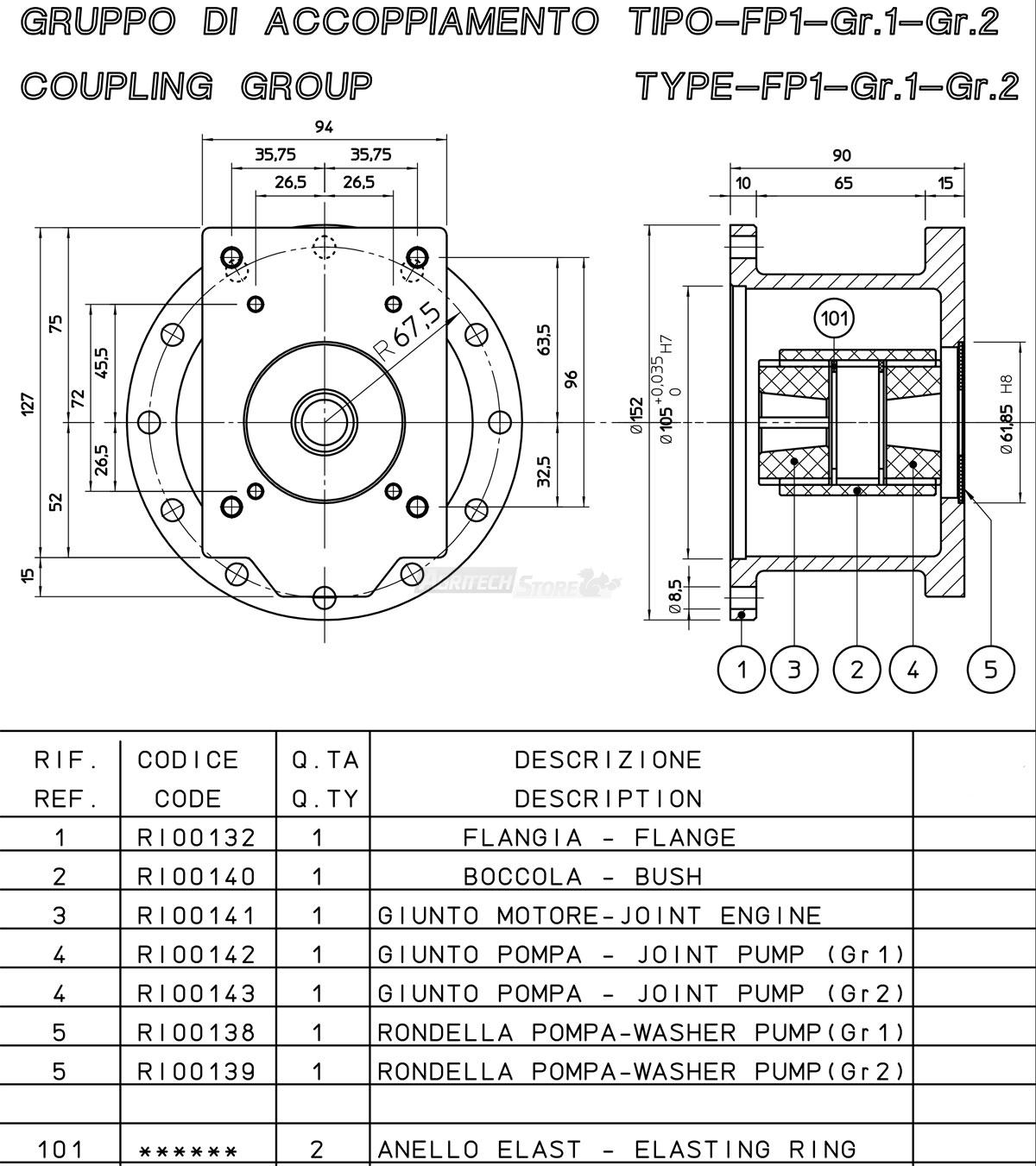 Flangia in alluminio per motori endotermici ad albero conico (versione italiana) e pompe oleodinamiche GRUPPO 1 e 2 SAE A