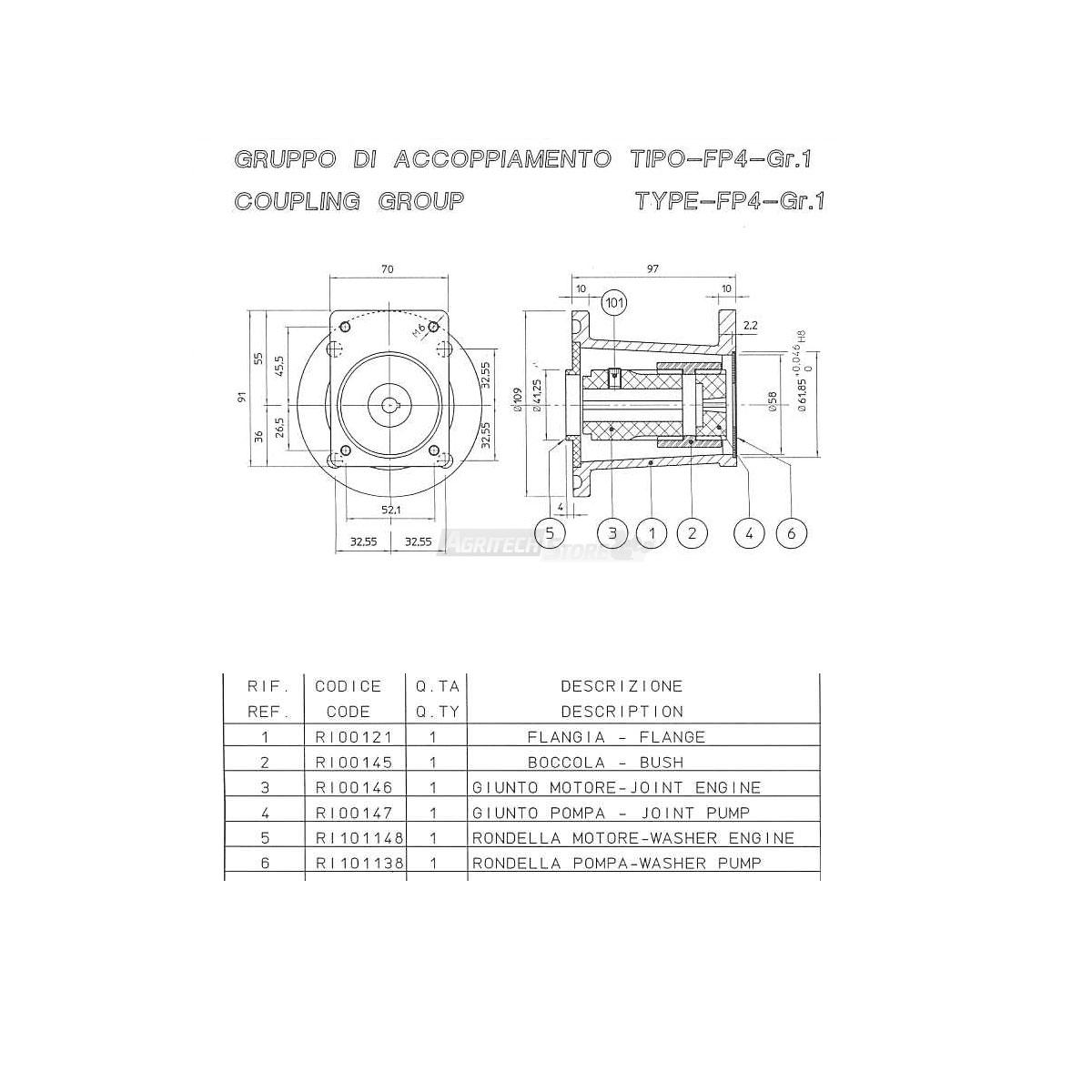 Flangia in alluminio per motori endotermici ad albero cilindrico in pollici da 3/4” (Ø 19,05) e pompe oleodinamiche per il GRUPPO 1