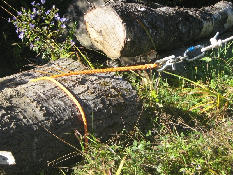 Un'impiombatura a occhio all'altra estremità viene utilizzata per 'strozzare' il tronco. Un valido aiuto per il lavoro!