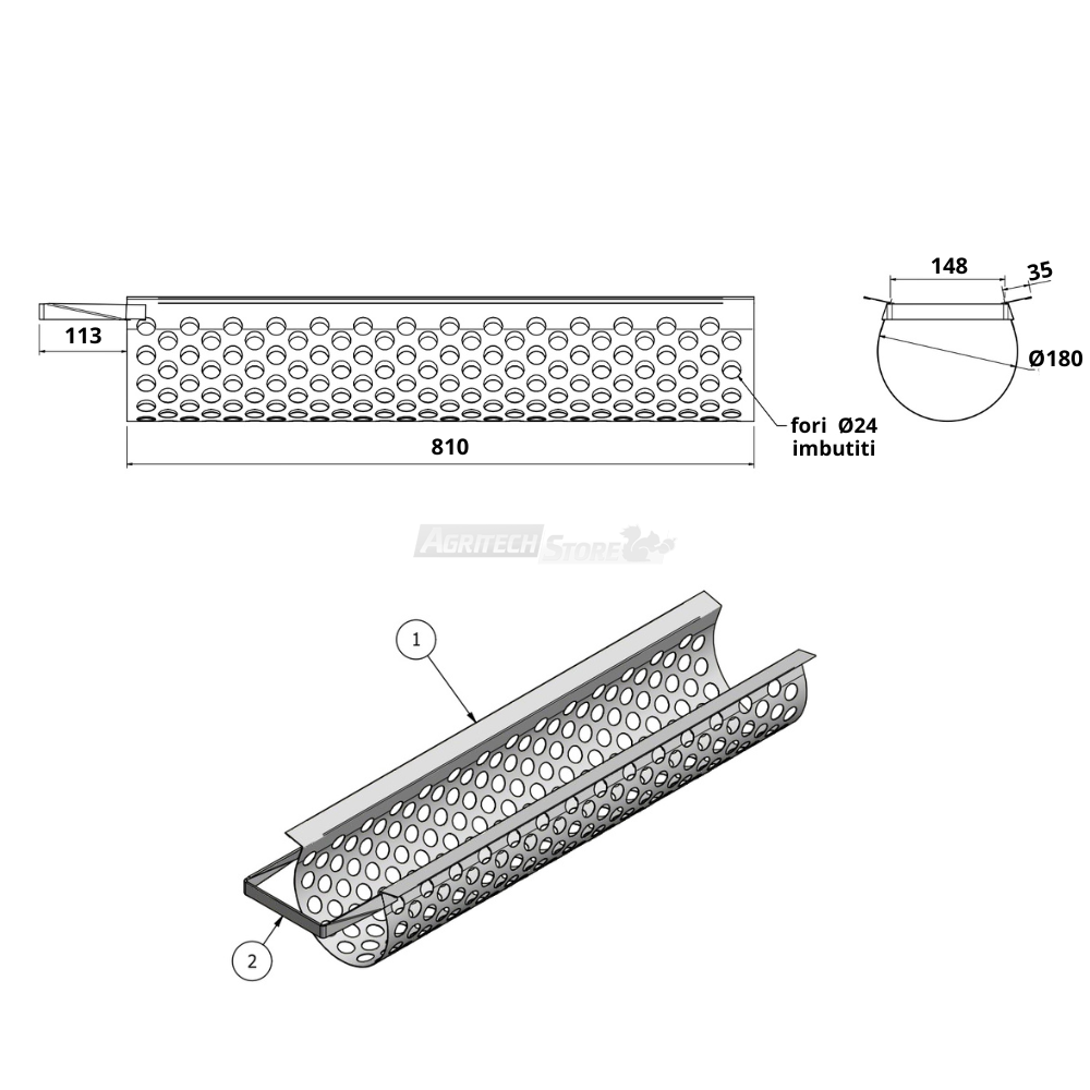 Griglia speciale in acciaio inox AISI 304 per pigiadiraspatrice a motore per cantine "Rossignola Inox".