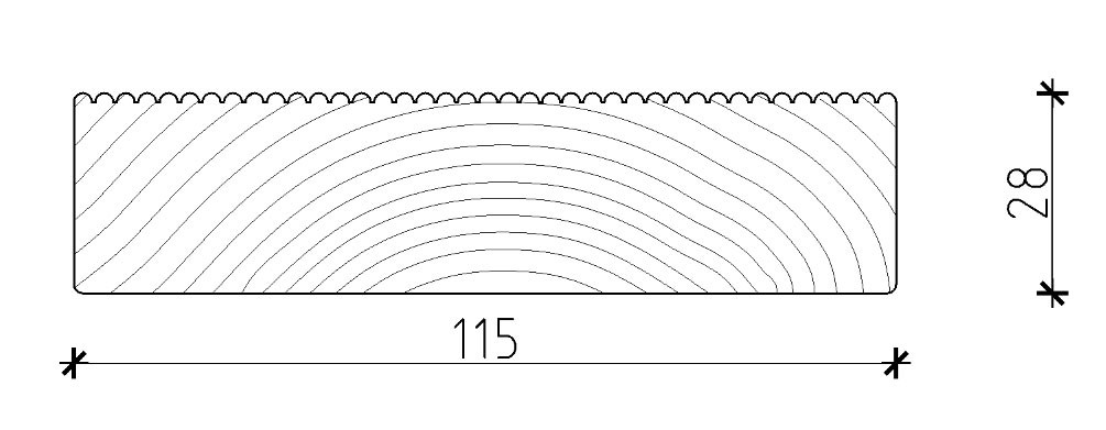 Tavola di calpestio zigrinata mm. 28x115 lungh. cm. 240/360