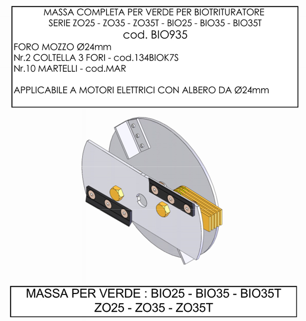 kit optional, massa per il verde adatta per il biotrituratore ZO25,ZO35,ZO35T.