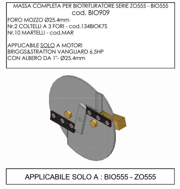 kit ricambio, massa di lavorazione completa di coltelli e martelli, adatta per il biotrituratore ZO555+.