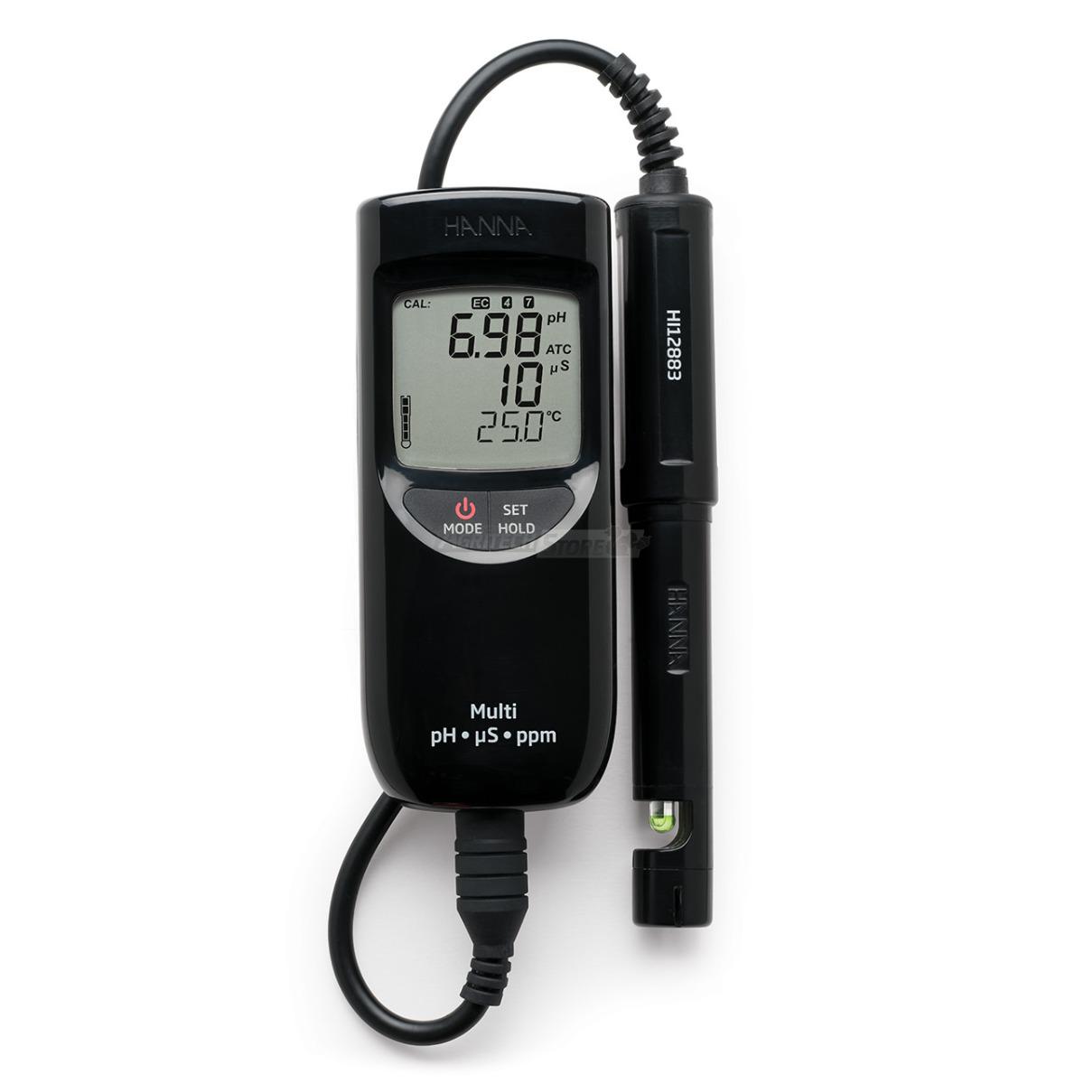 HI991300 è fornito con una sonda di pH/EC/TDS/temperatura amplificata, con corpo in polipropilene.
