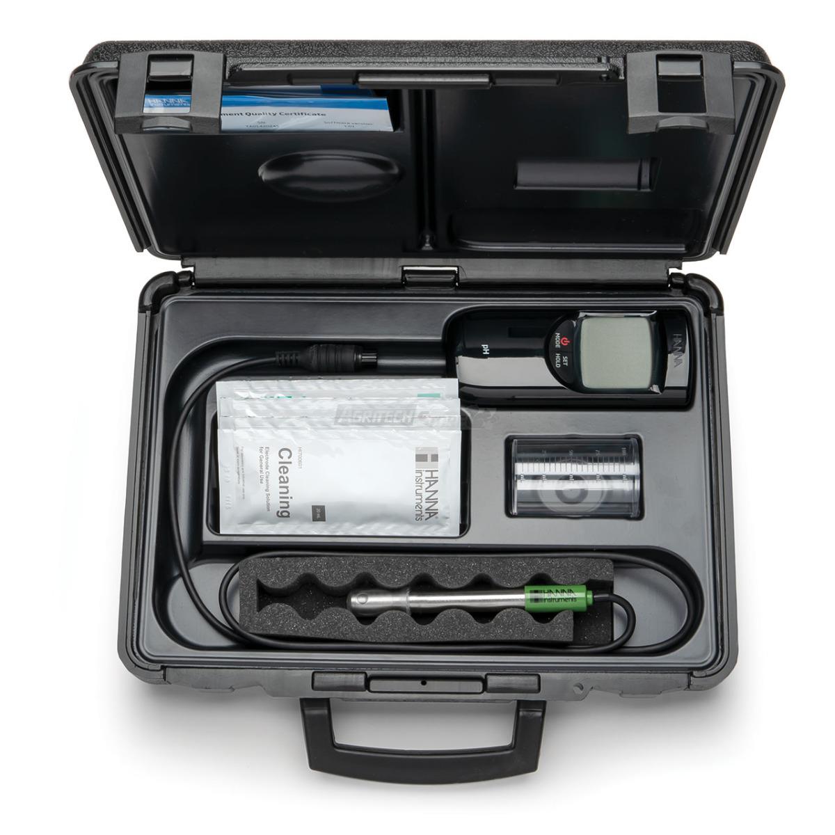 HI991001 è fornito con elettrodo pH/temperatura pre-amplificato con corpo in titanio.
