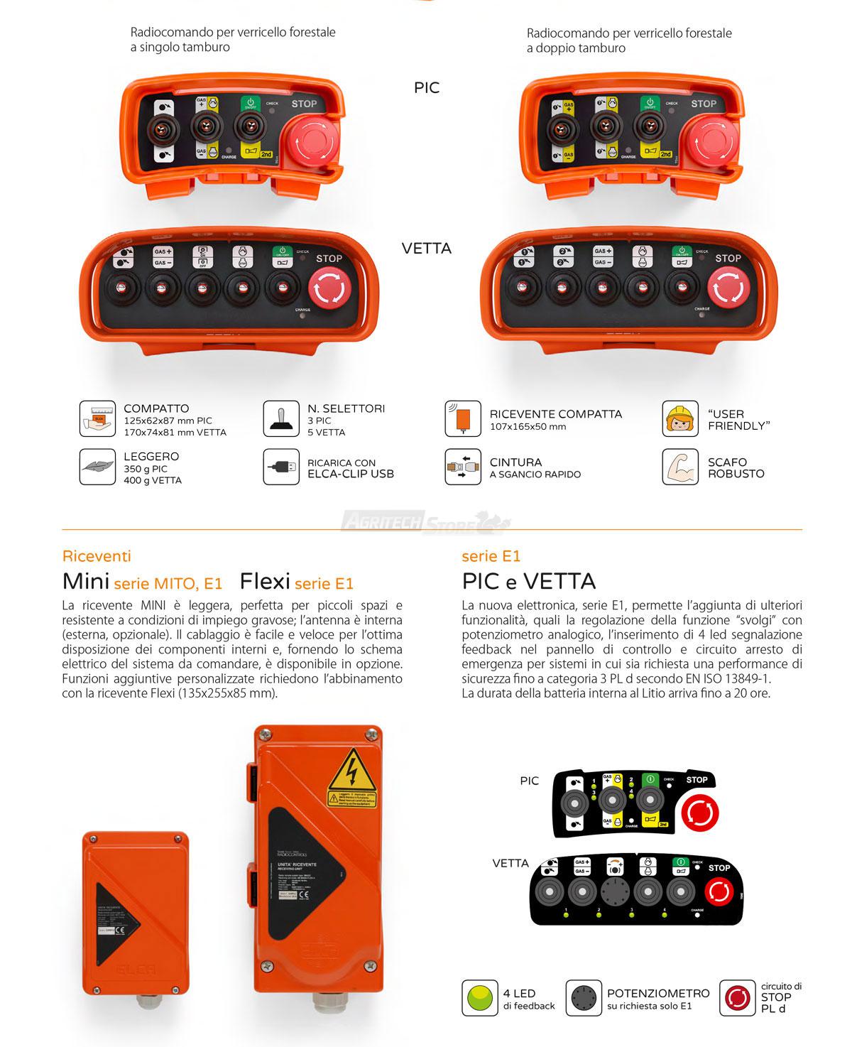 E1 PIC è un marsupio compatto, PICCOLO e leggero, robusto ed affidabile, per controllare verricelli forestali, senza essere vincolati ad un cavo. È compatibile con elettroniche MITO ed E1.