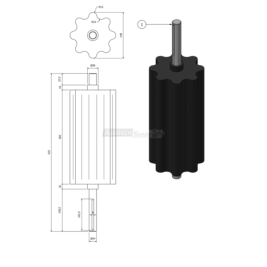 Rullo in gomma di ricambio per le diraspatrici Corvina, disponibile sia il destro che il sinistro.