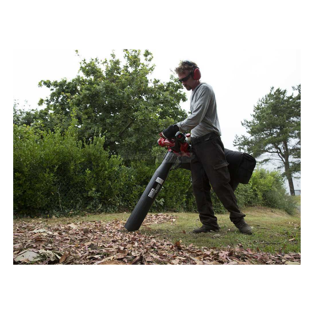 Modello di soffiatore-aspiratore-trituratore estremamente versatile dotato di tre lame in acciaio temperato in grado di sminuzzare grossi cumuli di foglie che possono essere raccolte nel sacco in dotazione.