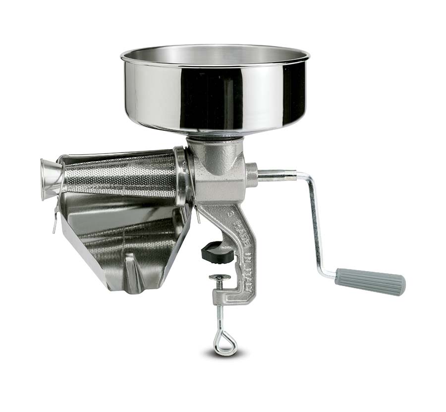 Ottimo spremipomodoro. Di misure ideali per una produzione familiare. Imbuto grande per lavorare rapidamente senza macchiare tutto, ma non enorme. Componenti di buona qualitá. La carcassa come la trasmissione del movimento sembrano robusti. Il sistema de la leva manuale si incastra in un esagono metallico e robusto. Un piccolo articolo che soddisfa le necessitá di una produzione familiare con qualche esigenza di qualitá e produzione.