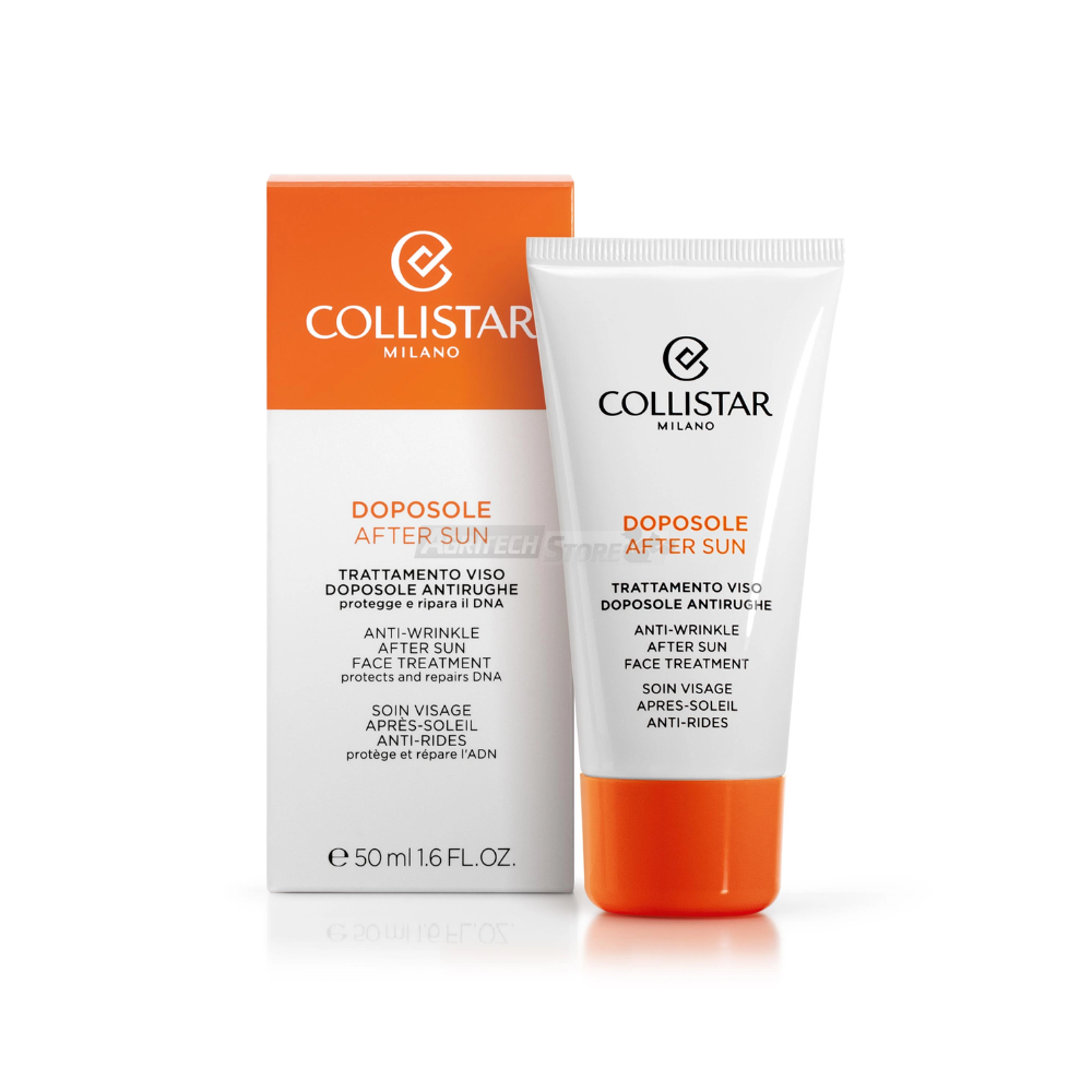 Il trattamento viso doposole antirughe di Collistar non è un semplice doposole antirughe, ma un vero trattamento rigenerante e riparatore appositamente studiato per l' epidermide del viso. Grazie alla sinergia delle preziose cellule staminali di centella asiatica con le vitamine A, E, B5 e con un mix di principi attivi di assoluta avanguardia: protegge il DNA cellulare cutaneo dai radicali libri e dai danni della foto-esposizione; stimola i processi di autoriparazione della pelle; previene le rughe e l' invecchiamento cutaneo; combatte la degradazione del collagene e delle proteine dermiche da cui dipendono l' elasticità e la compattezza dei tessuti cutanei; nutre e idrata la pelle lasciandola morbida e levigata; lenisce rossori e fastidi post-sole donando intenso e immediato benessere. Usato quotidianamente, rende più luminosa l' abbronzatura e la fa durare più a lungo. Oltre che per il viso, è consigliato per décolleté, seno e mani.